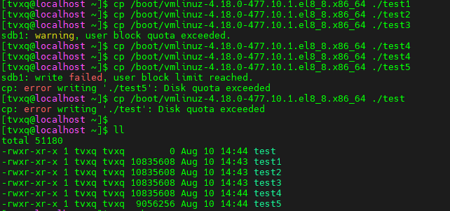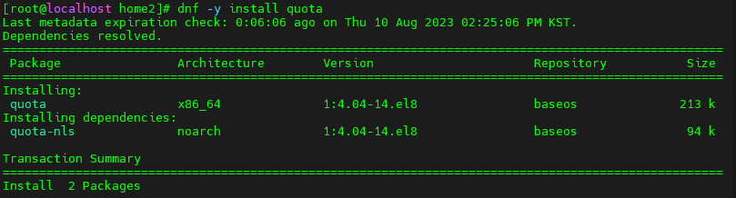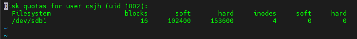 2. 사용자 홈 디렉토리에 .quota 파일이 생성되며, 여기에 사용자별 디스크 사용량 정보가 저장된다.