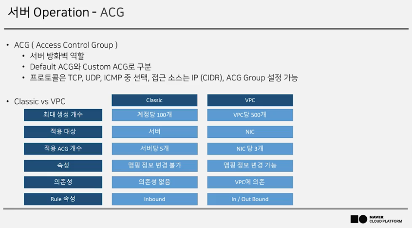 Classic과 VPC에서 제공하는 ACG의 스펙이 다름.(사진참고)