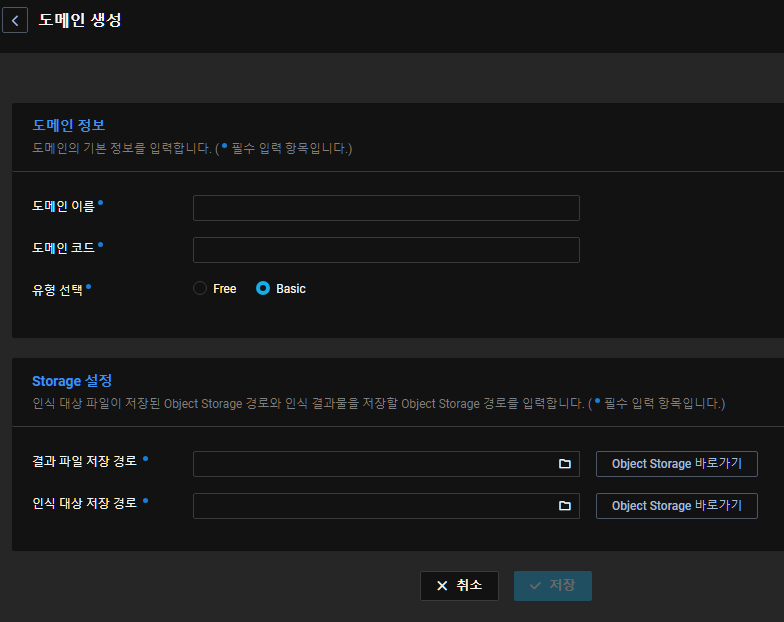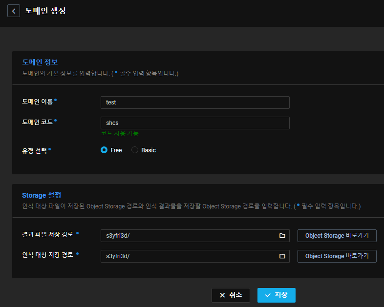 Free 도메인 유형은 매월 일정 인식시간을 무료로 이용할 수 있다. (1계정당 1개의 Free 도메인만 생성 가능)