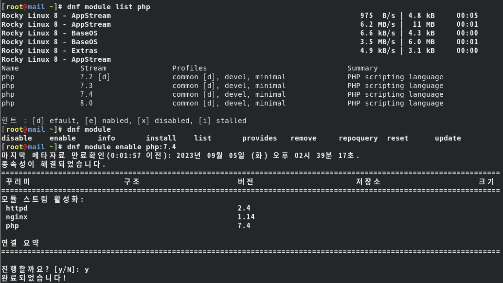 dnf -y install php*로 모든 모듈을 다운받고 ( 원래는 필요한 플러그인만 다운받는다 )