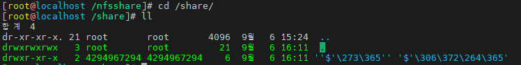 exportfs -v 로 확인