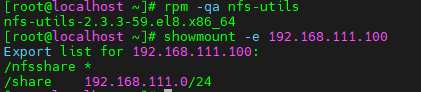 mount -t nfs 192.168.111.100:/share /nfsmount