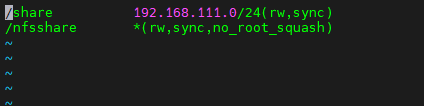 /nfsshare 192.168.111.0/24(rw,sync) #sync = 즉각 반영(동기화)